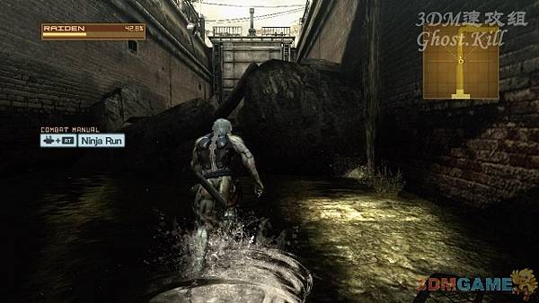 建築內大量自動機槍和紅外線,使用面罩可以掃描出來,衝刺可以躲開紅外線,自動機槍跳起來砍掉即可。