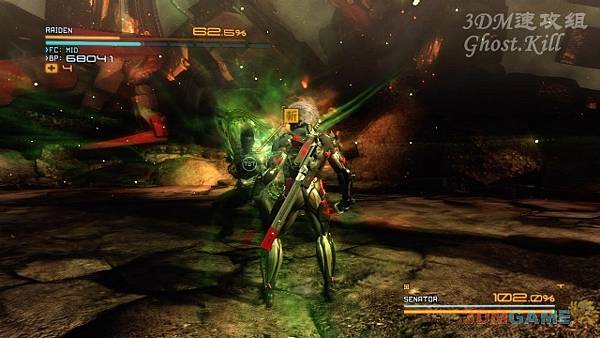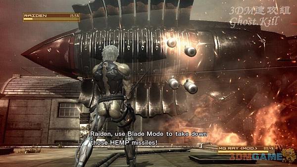 的血後可以進入斬切模式砍爛護甲,最後可以切掉胳膊上的自動機砲。BOSS發射的導彈躲開後砍爛會