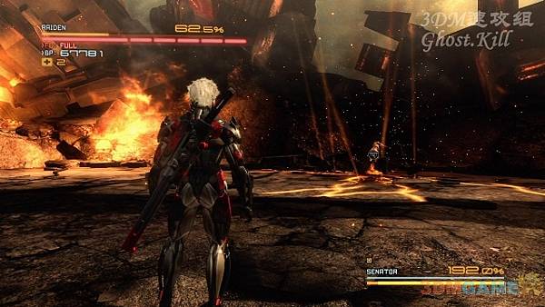 等BOSS推到遠處後會發射大量導彈過來,按住衝刺鍵踩著導彈到BOSS近身,QTE砍掉另一隻胳膊。被甩到